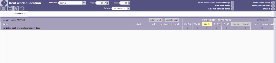 I connected as admin, go to RWA screen : No work planned (OK)