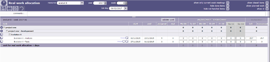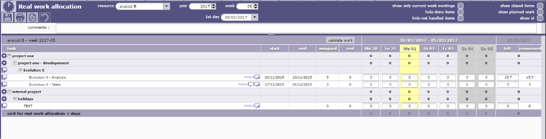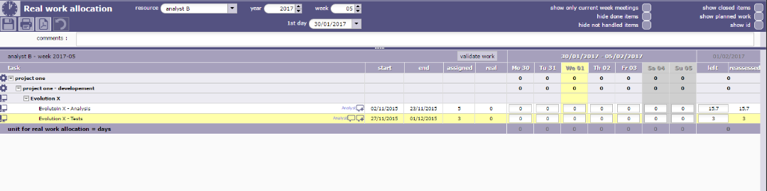 But if you refresh (e.g. changing week) you will see no project as imputationList uses current user id, and refreshImputationList uses id from the form.