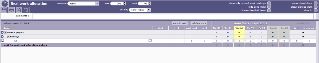 ProjeQtOr free project management software - Imputation List for Admin - ProjeQtOr