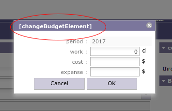 ProjeQtOr free project management software - Dialog box - Change budget element - - ProjeQtOr