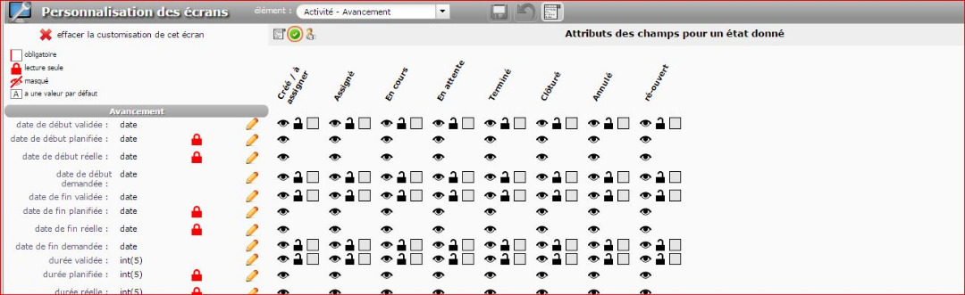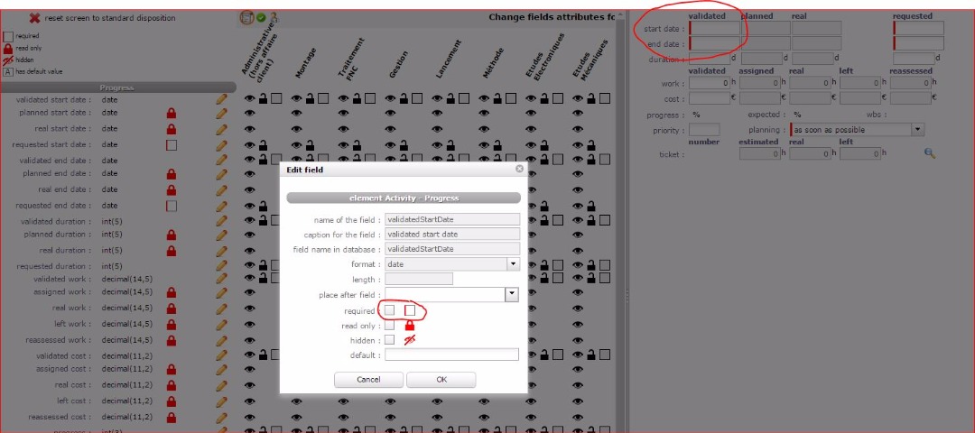 On customization Screen, i would like to change on activity progress, the required status, but is not ckecked !!! and I must to enter, when I create new activity the validated start date and the validated end date. Why ?