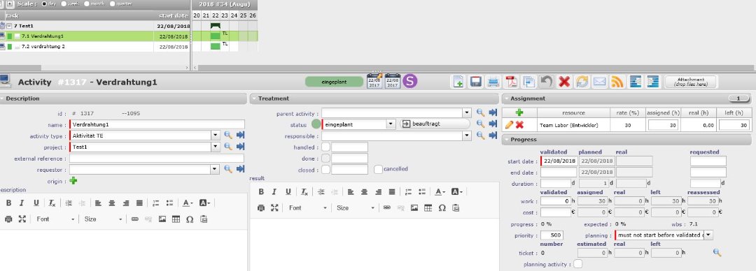 Another thing is, when I change the planning in “as soon as possible” the activity starts today although the project has the validated start date 22.08.2018. (But it’s still just one day.) In my understandig activites should only be planned after the validated start date of the project and not before the project starts.
