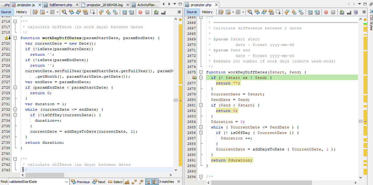 ProjeQtOr free project management software - Bug's correction proposal: duration calculation (projeqtor.js:workDaysDiffDates) - ProjeQtOr