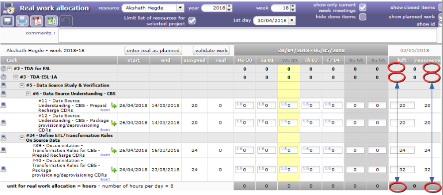 The Real Work Allocation screen does not show total reaasessed work, as shown below