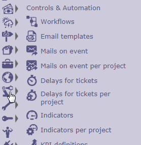 IN the top menu, when selecting "Controls & Automation" menu, the button for "Mails on event per project" is not visible.