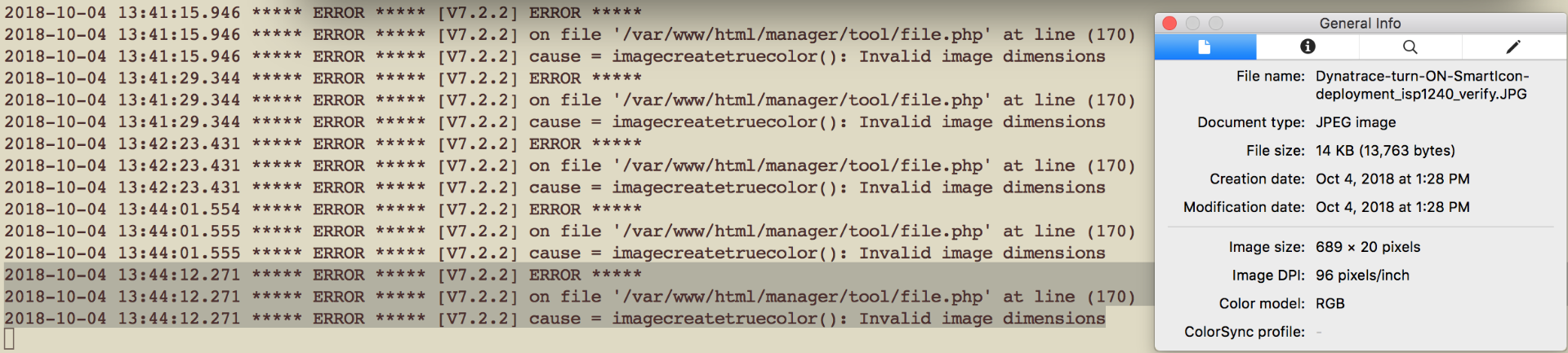 2018-10-09 10:05:28.682 ***** ERROR ***** [V7.2.3] cause = imagecreatetruecolor(): Invalid image dimensions