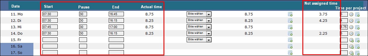 • If not all 8,75 attandance-hours were assigned to a project, a message could be displayed