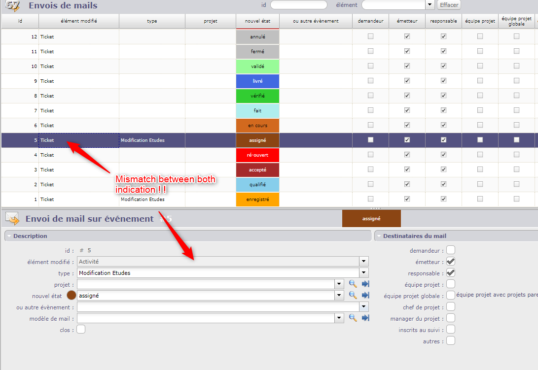 In my example, I try to create send email for ticket element, and the type should be like in screen 1,but the type are like in screen 2.