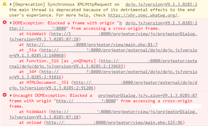 But when I try to connect, I have this alert message (attached picture): DOMException: Blocked a frame with origin "http://ipadresse:8080" from accessing a cross-origin frame.