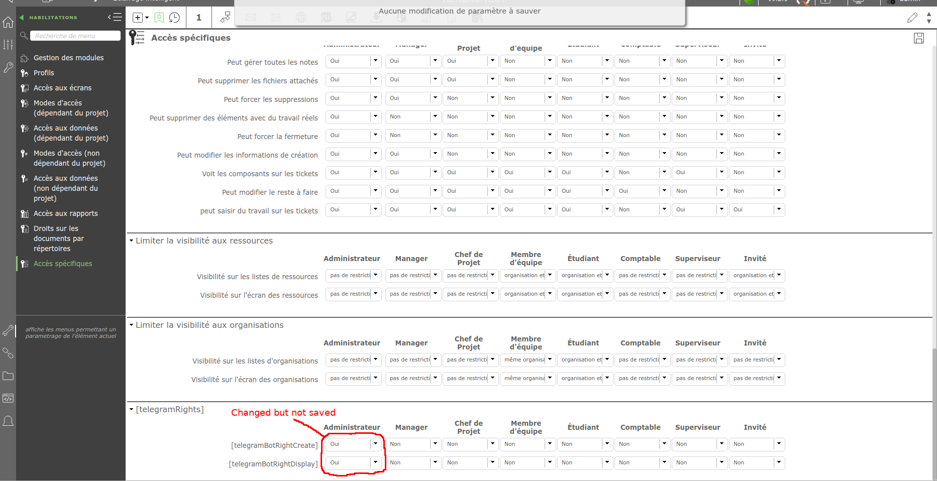 I'm trying to add a new habilitation section (specific access -> habilitationOther)