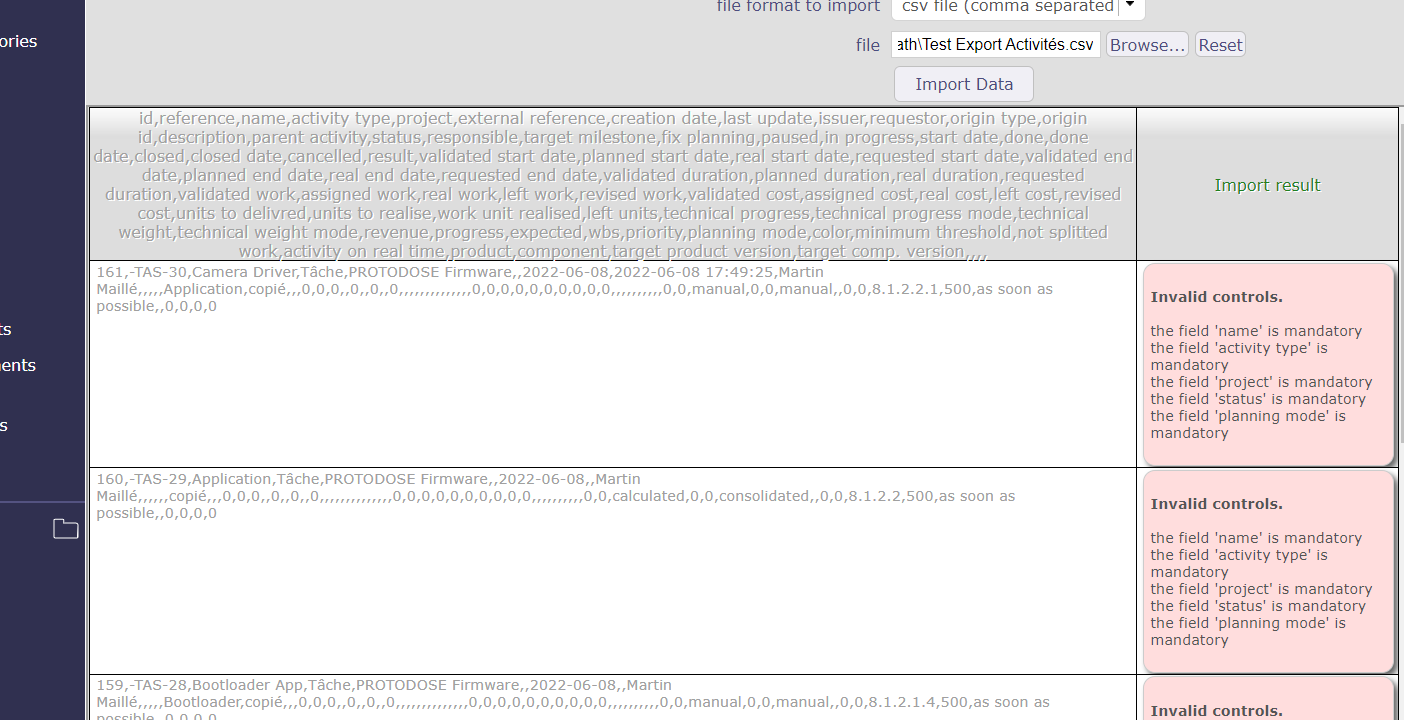 ProjeQtOr free project management software - [SOLVED] IMPORT csv format ACTIVITY ERRORS - ProjeQtOr