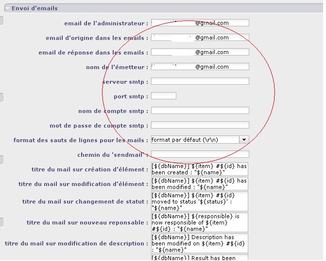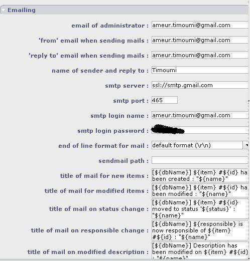 ProjeQtOr free project management software - configuration d'envoi émail - ProjeQtOr