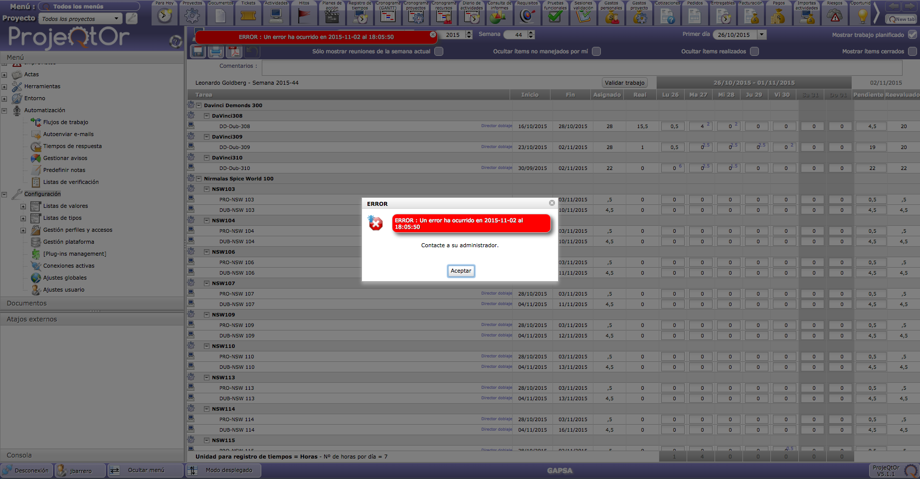 Well diferent users, don't know If all cannot save the hours because when they save there is an error screen. I attach the capture but don't know whats the error as it doesn't say. Just contact the administrator.