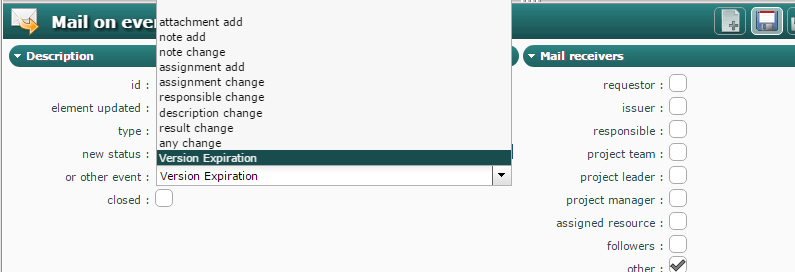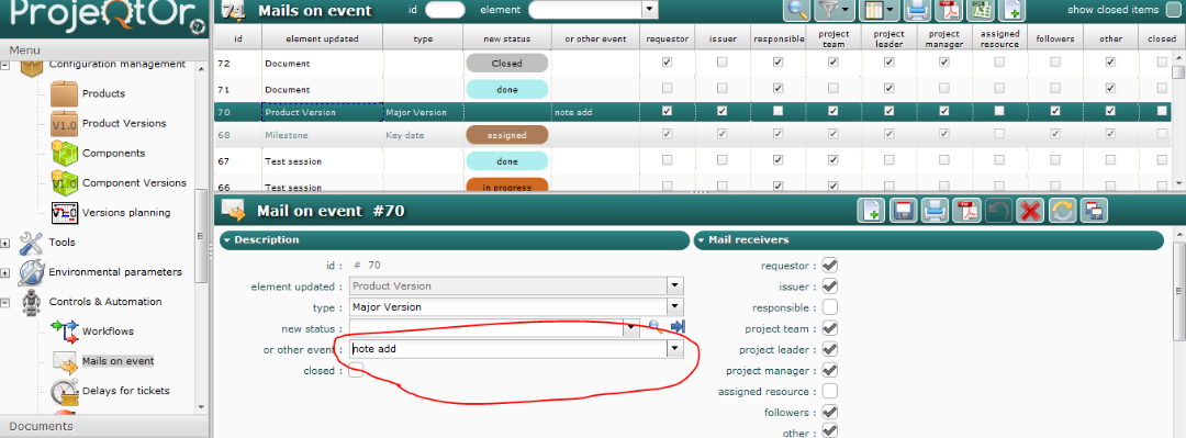 ProjeQtOr free project management software - Add other event in Mail on event->product version - ProjeQtOr