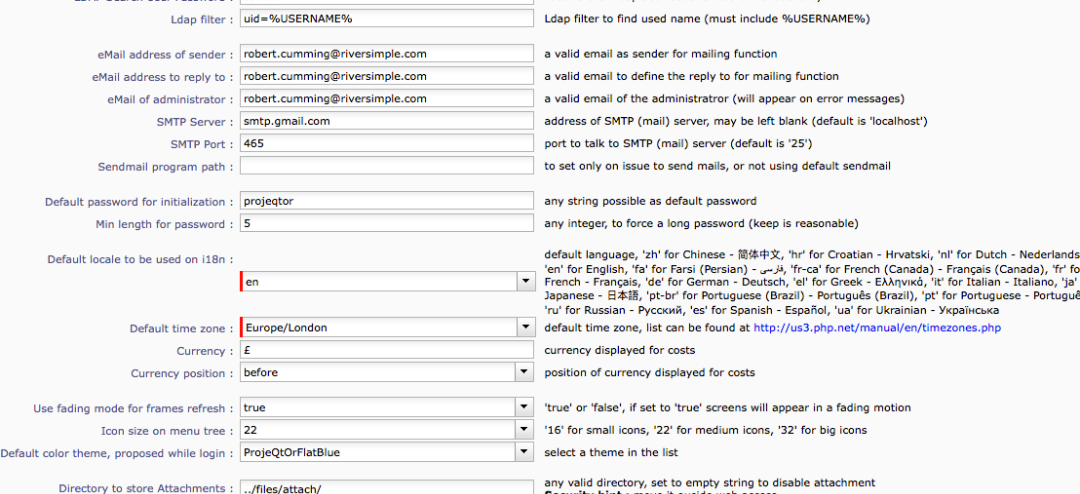 I have recently set up projeqtor and I am trying to configure it to run with my email address.