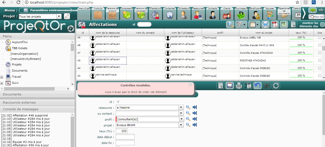 when I want to change a profile for a user or assign a project to a user I do not have access to do these operations;