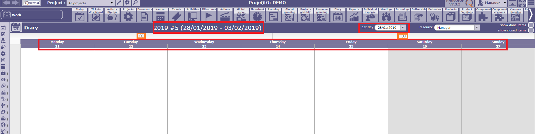 ProjeQtOr free project management software - Diary : error on the dates with the view by week - ProjeQtOr