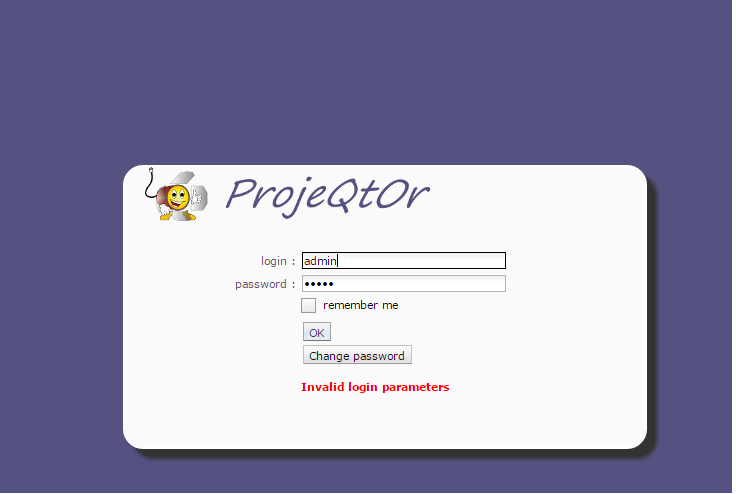 ProjeQtOr free project management software - INVALID LOGIN PARAMETERS - ProjeQtOr
