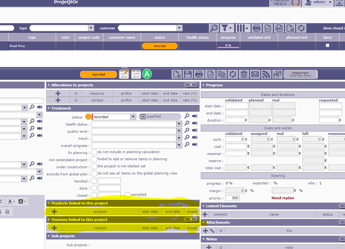 ProjeQtOr free project management software - link to products shall be not displayed - ProjeQtOr