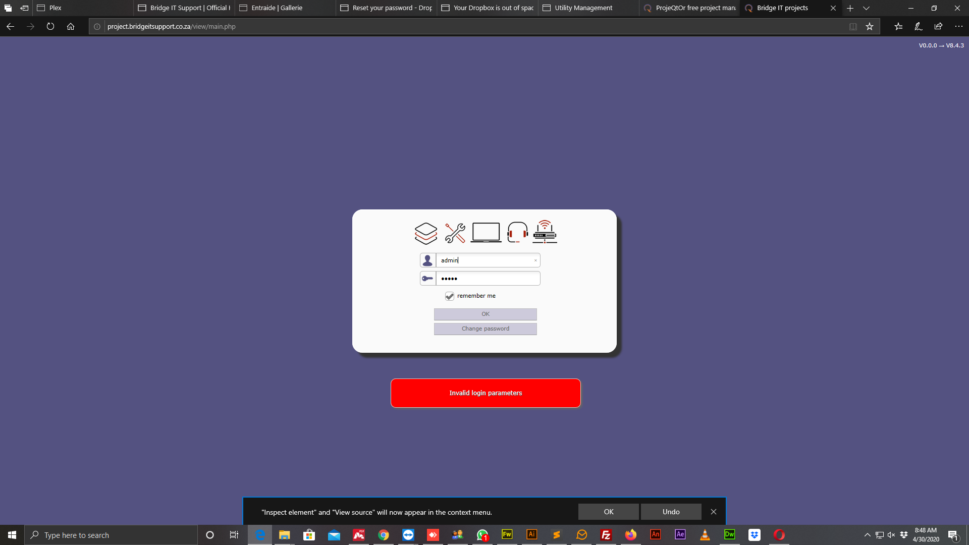 ProjeQtOr free project management software - login admin not working - ProjeQtOr