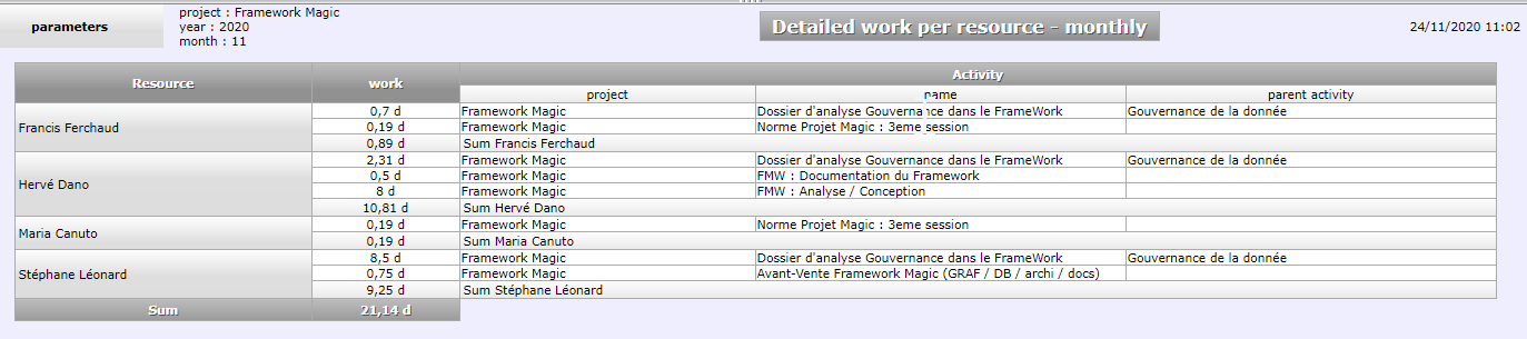 I see also that the report Detailed work for a resource - per year seems to be correct. So it is only in the "between two dates" reports that there seems to be something wrong.