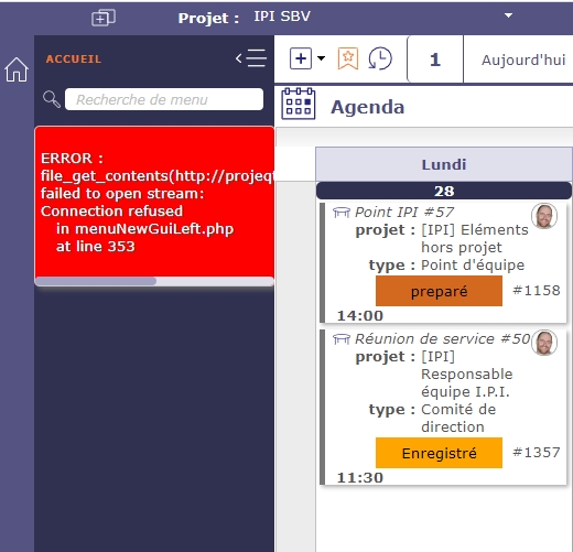 But unfortunately All the menu on the left part and the project selector on the top doesn't work because of the error :file_get_contents(projeqtor.org/admin/getPlugins.php): failed to open stream: Connection refused