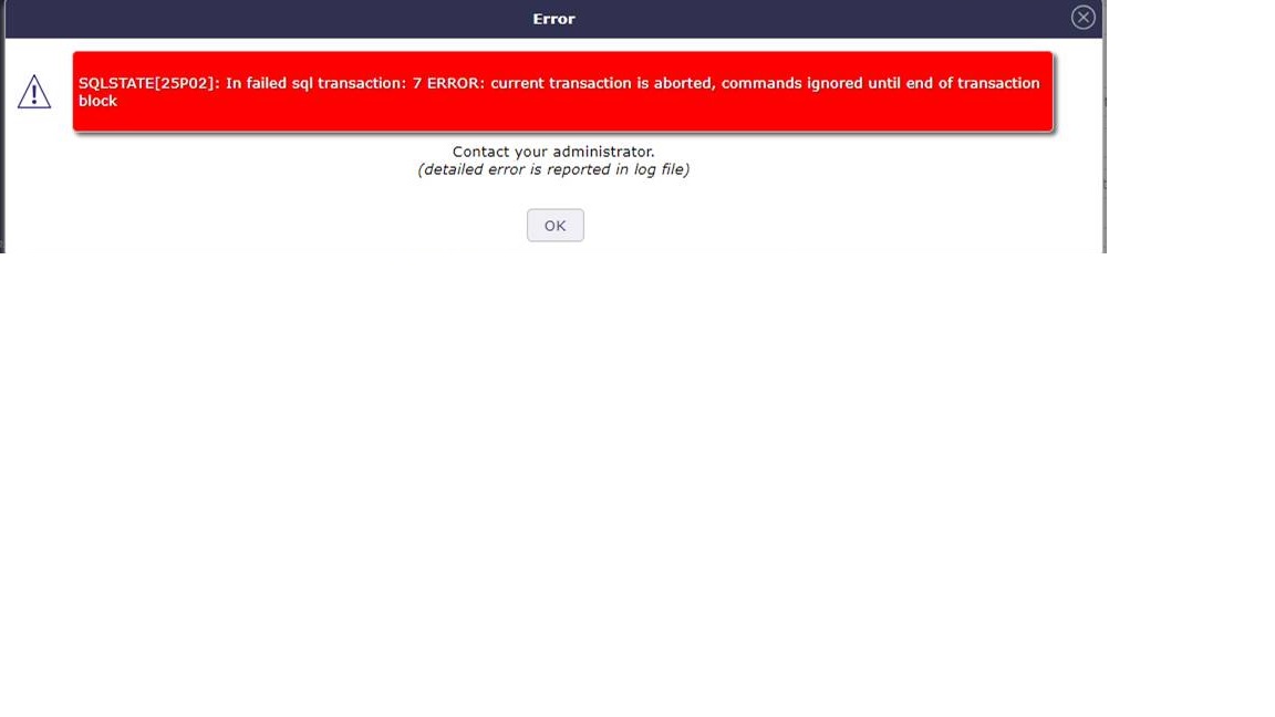 [2] Frequent Exception-[25P02] SQLSTATE[25P02]: In failed sql transaction: 7 ERROR:  current transaction is aborted, commands ignored until end of transaction block error is also reflected on user ticket entry screen.