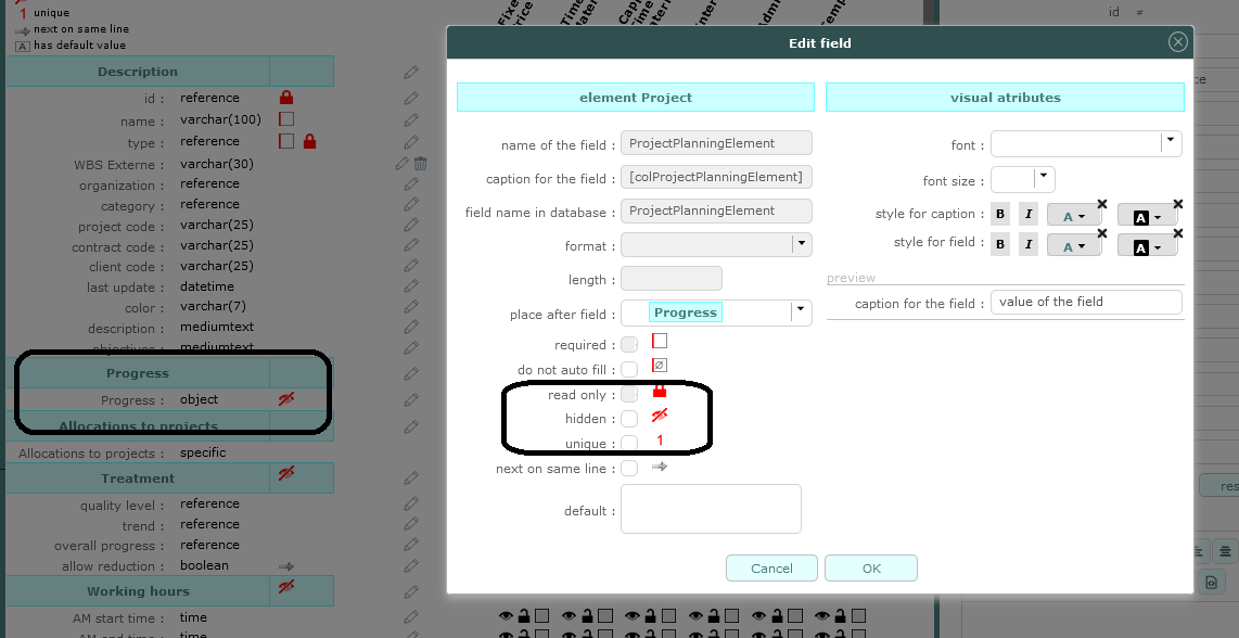 There is another issue: in the Project section, I observe a "hidden" picture at the progress and treatment parts, whereas they are not hidden (checked with the edit window).