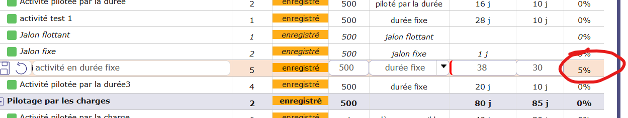 with an activity set "fixed duration", charge set and no assignation, i can't change avacement value in planning view.