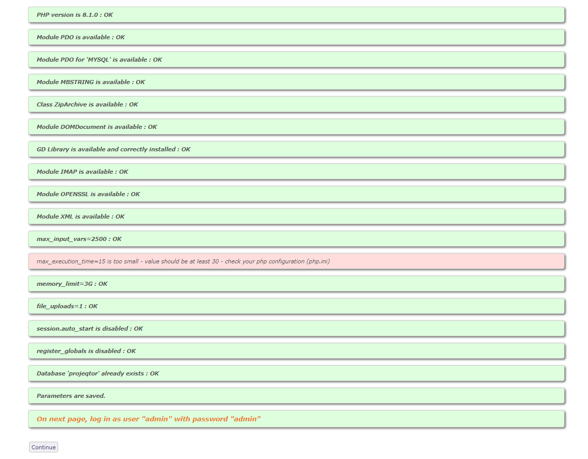 Completely blown away the Projeqtor installation and reinstalled from scratch. No good.