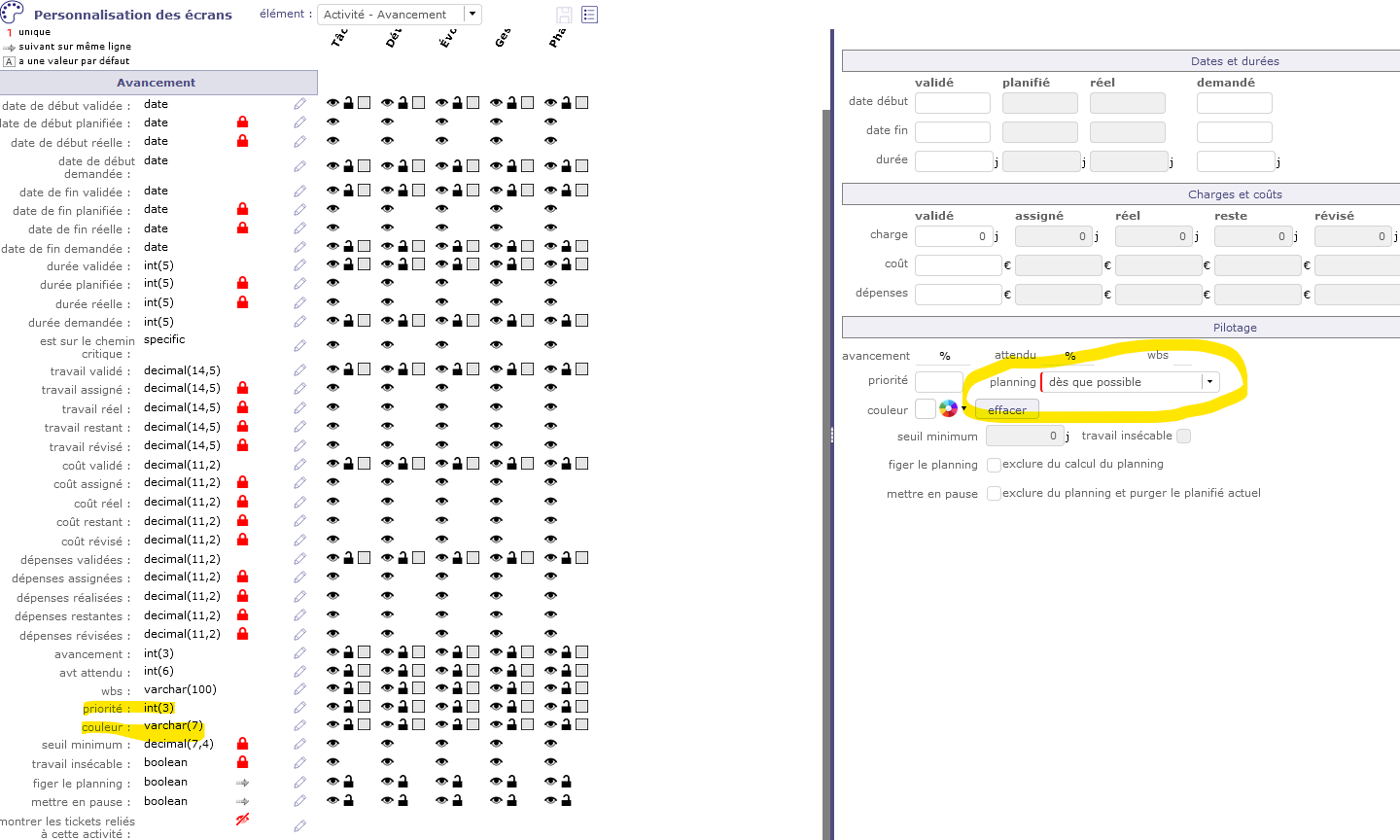 ProjeQtOr free project management software - Screen customization : losing field... - ProjeQtOr