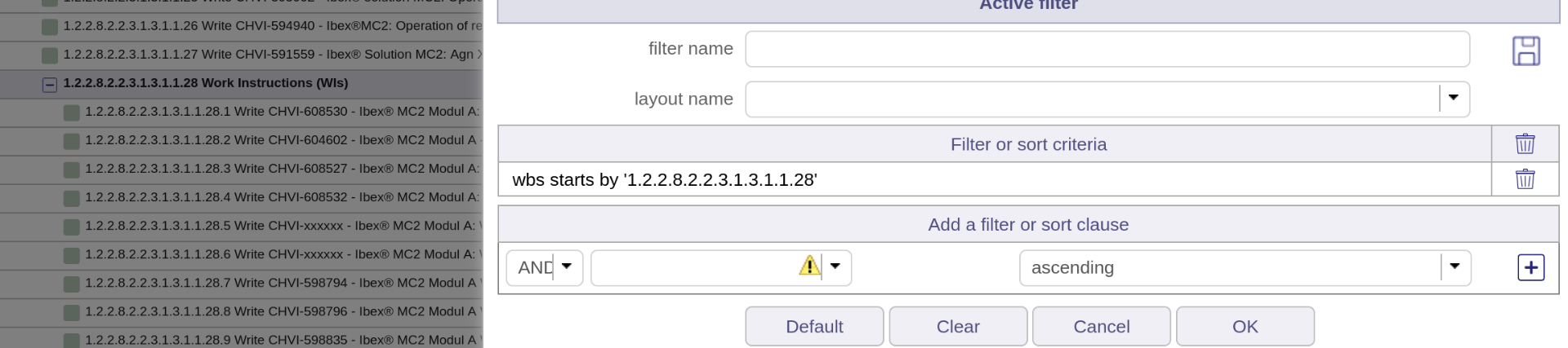 Using the filter feature, I would like to display only WBS section starting from 1.2.2.8.2.2.3.1.3.1.1.28.
