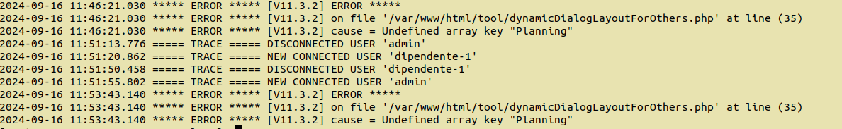 Same, we don't reproduce. Can you attach the projeqtor logs? Do you have any error messages in the browser console?Error message in the log file is the one I reported.  I attach screenshots of the latest log records reporting that error and also the message in the browser console..   I emphasize the fact that even the rare times in which this error message did not appear, in any case  layout of other users not changed  according changes made by the administrator.  Does layout propagation work for you on Global Planning screen  ?!