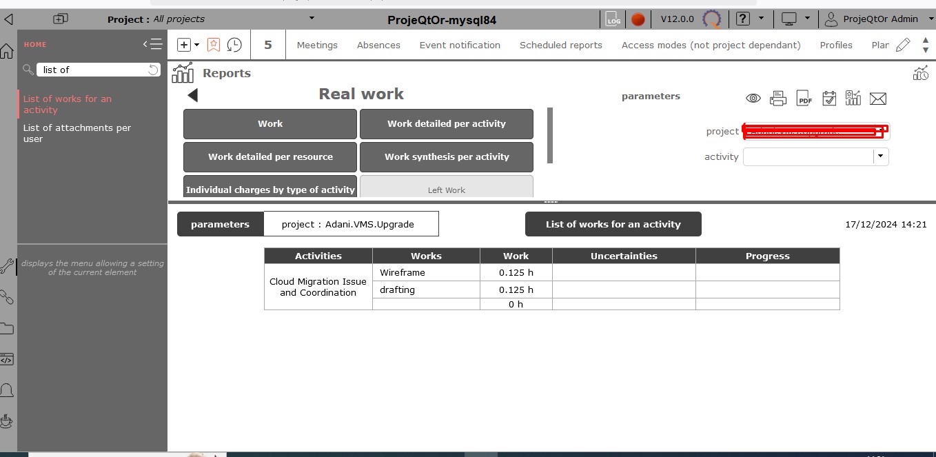 I was checking with ProjeQtOR version 12.0.0 for timesheet: dispatch entry and then checked for report: list of works for an activity, it looks that hour units are showing not as entered in timesheet, in my case I had entered 1 hour each for two jobs, report is showing value 1/8 and also not showing total at the end. Please refer to the attachment.