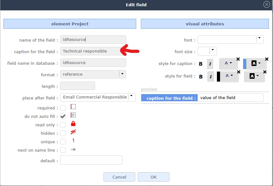 In this case, you would have to create a new idTechnical (or other) field and enter your data. If you want to use a list of resources, you can enter idTechnical__idResource.
