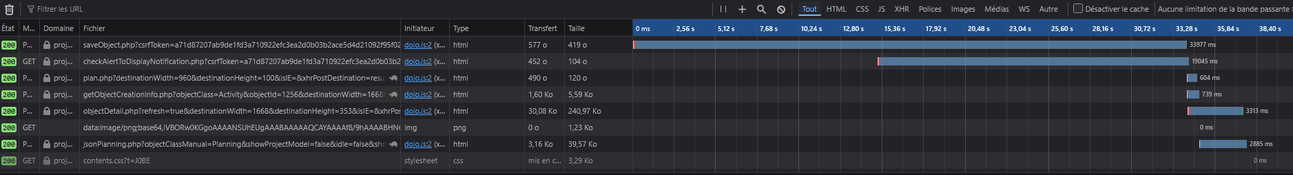 For example, changing the number of days for a task on my server results in a 32-second wait! Whereas if I compare it with the ProjeQtor demo, it takes less than 7 seconds.