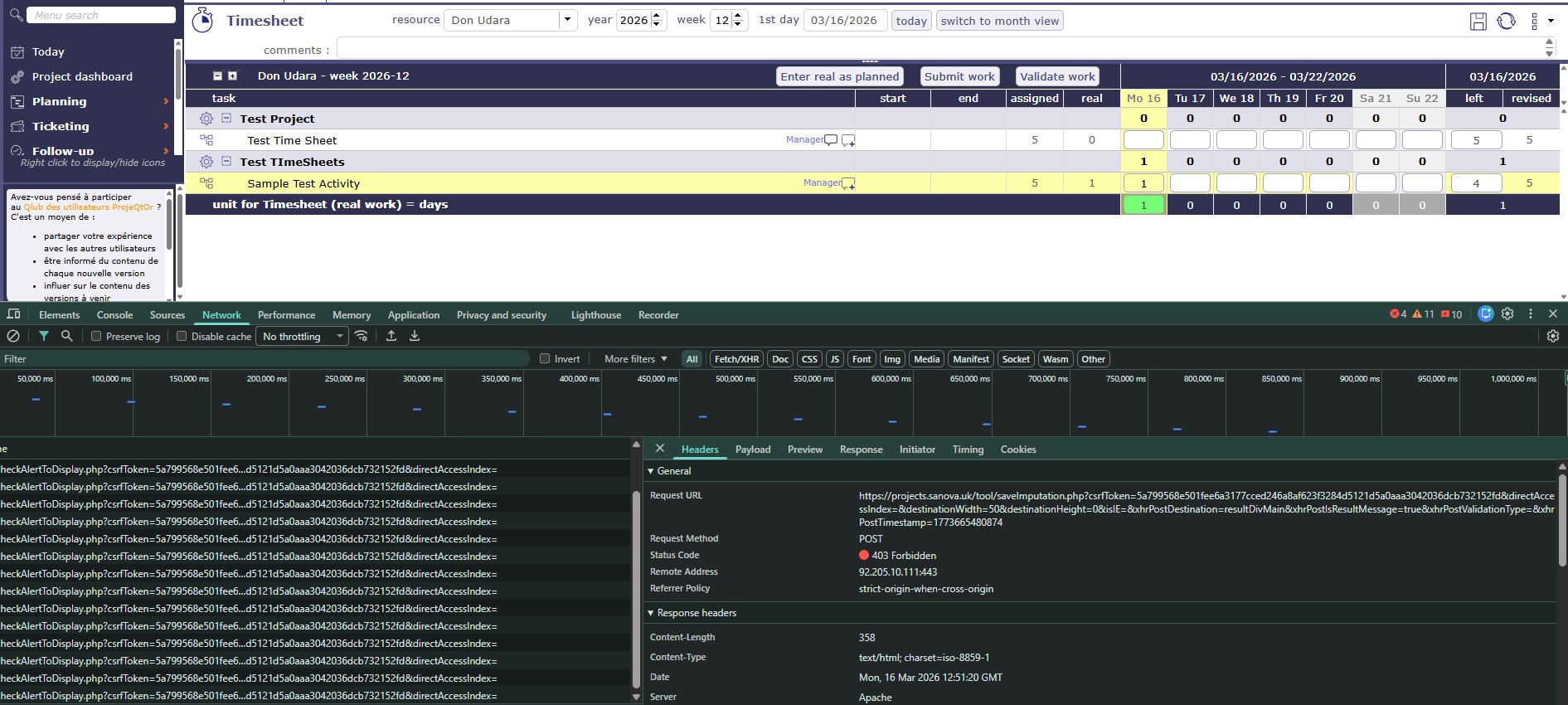 ProjeQtOr free project management software - TImesheet changes are not saving - ProjeQtOr