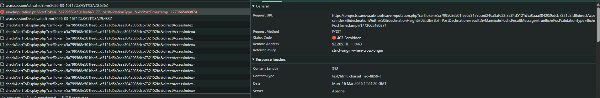 I created a project and created tasks and assigned tasks to a project member and when I log back from the member account and under the same task I can't save the timesheet changes , this error comes on the network tab ( browser ), I did this many times with different user roles and project settings but the issue still remains