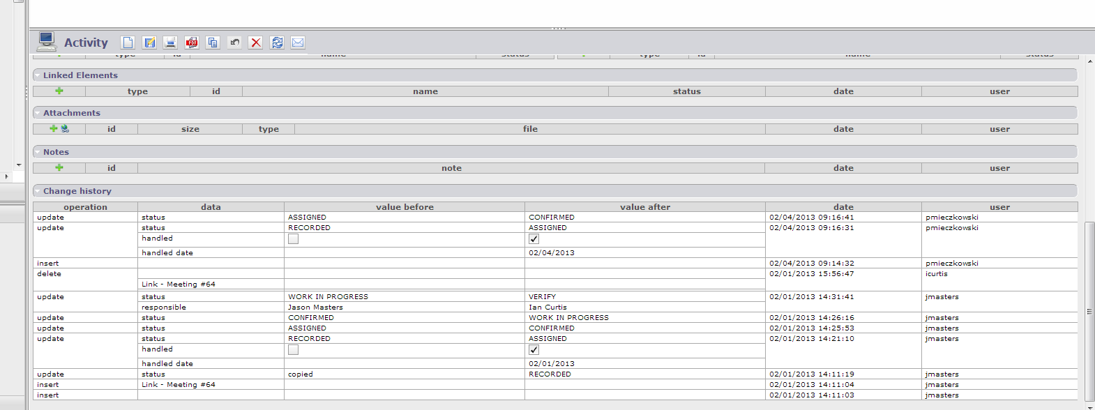 1) I deleted a meeting #64 from task 16646 on Friday 02/01/2013 15:56:47 and in the same instant it deleted the task 16646 without my authorization.