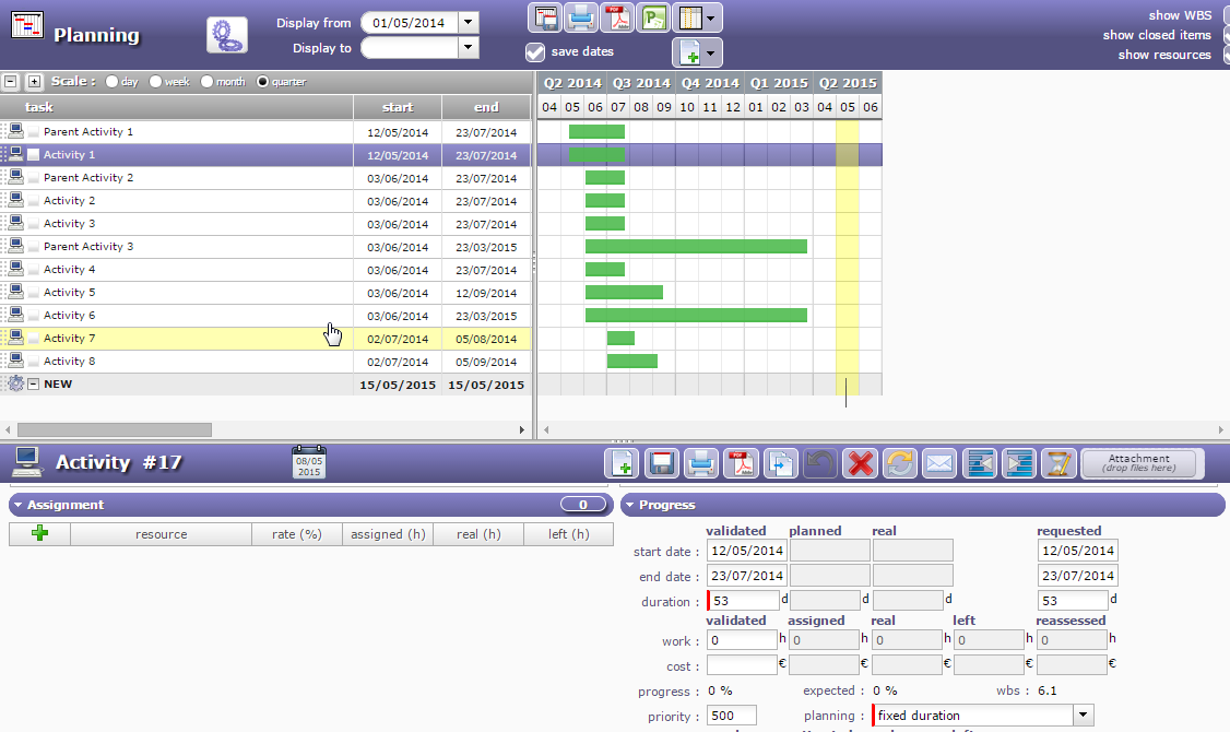 Please see the attached XLS file with an example of activities which were imported and the result after importing them in projeqtor in "Planning screen". Pay attention to the start and end date, comparing XLS file dates X projeqtor dates.