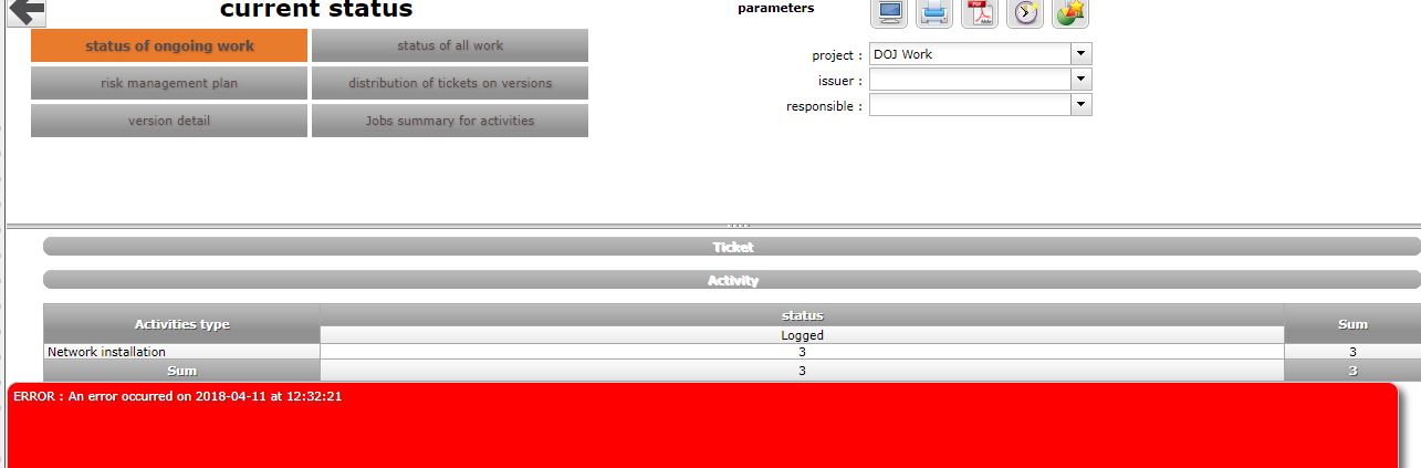 We are using V.6.5.5 with PHP 5.3.9 . After the upgrading version, current status reports (status of ongoing work and status of all work) failed . It doesnt seems that due to bad network connection . Because there is no failure on other reports.