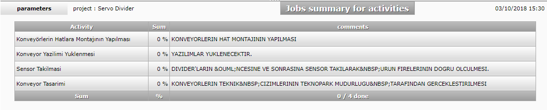 I have a question about current status- jobs summary for activities report. When i check progress rate of actvities on the activities module , i see %29, %100 etc rate . But current status- jobs summary for activities report.show all progress rates (sum section) are zero. I also add screenshots.