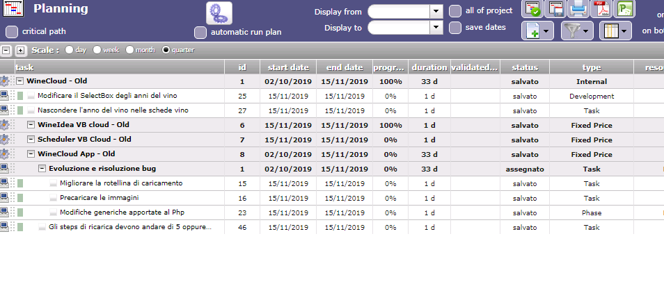 I believe that a similar tree list would be important, since we could get an overview of all activities and related bugs/incidents not only from a Planning point of view, but also as a general view. Then we could go over and include also everything on this tree list: a general view showing activities, incidents, meetings, case studies ....