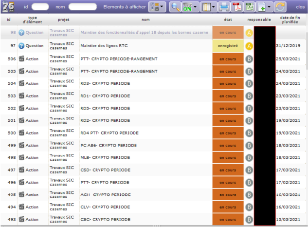 List of task for every day working (with many details) and another for report meeting (with few fields for lisibility).