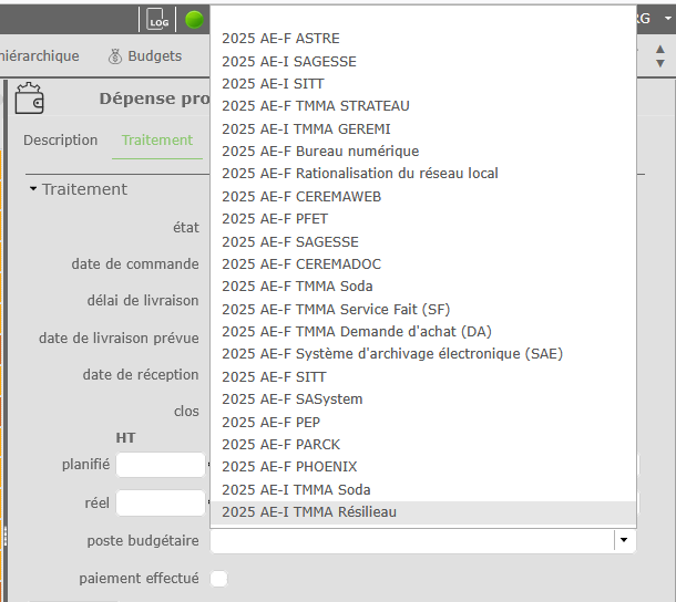 regarding the field for the list of budget items, this list is sort by budget n° BBS (ex : 1.1.2 -> 1.1.3 -> 1.2.0 ect...).