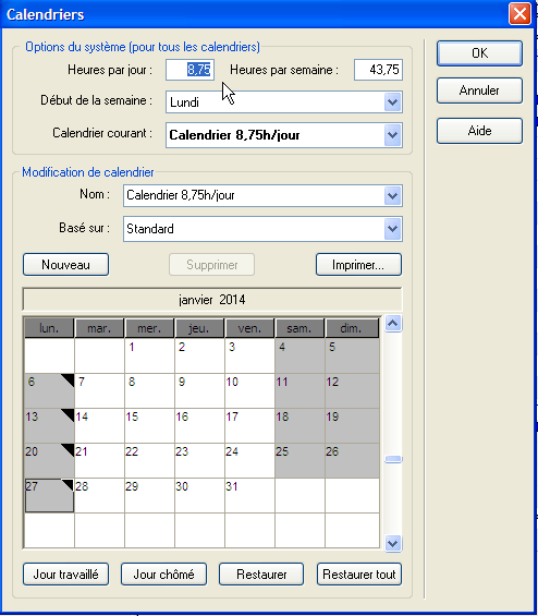 In fact, like Projeqtor, you can create calendar, but you can, in each calendar, chose numbers of working hours