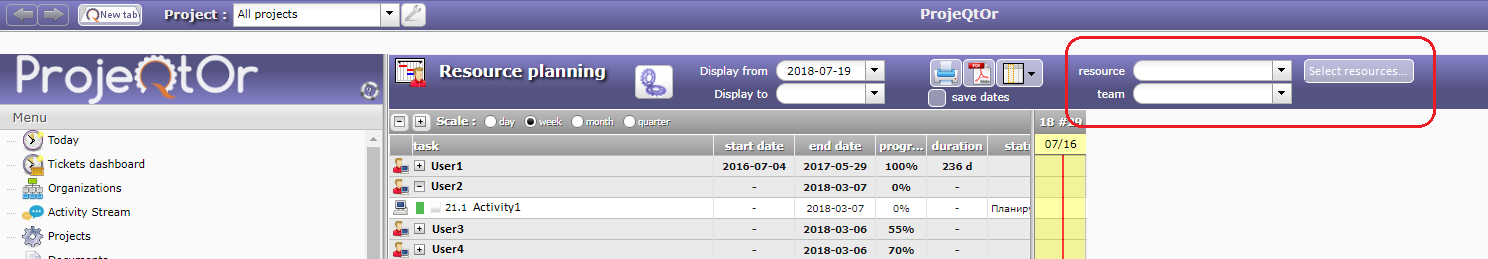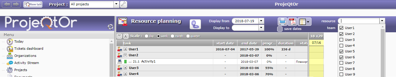 ProjeQtOr free project management software - Improved resource planning window usability - ProjeQtOr