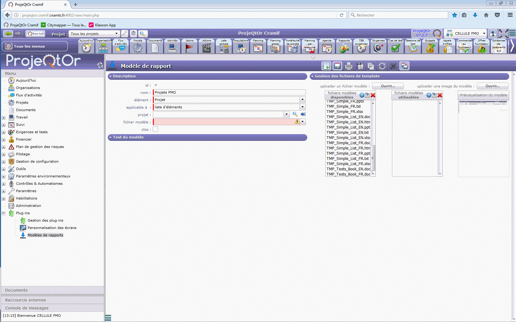 I confirm we cannot fill in the "usable template files" field with any kind of templates (the "available template files" or a template file uploaded)