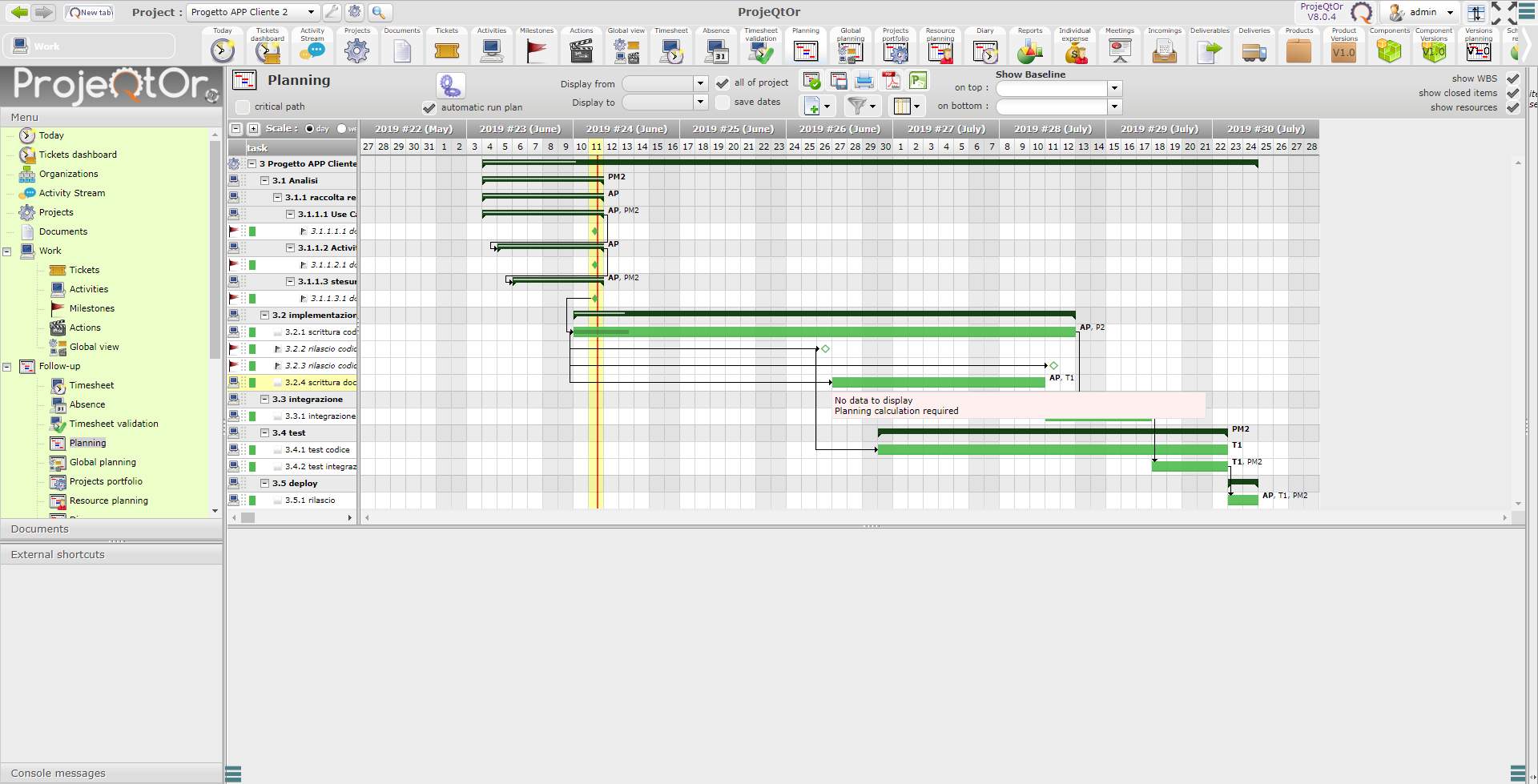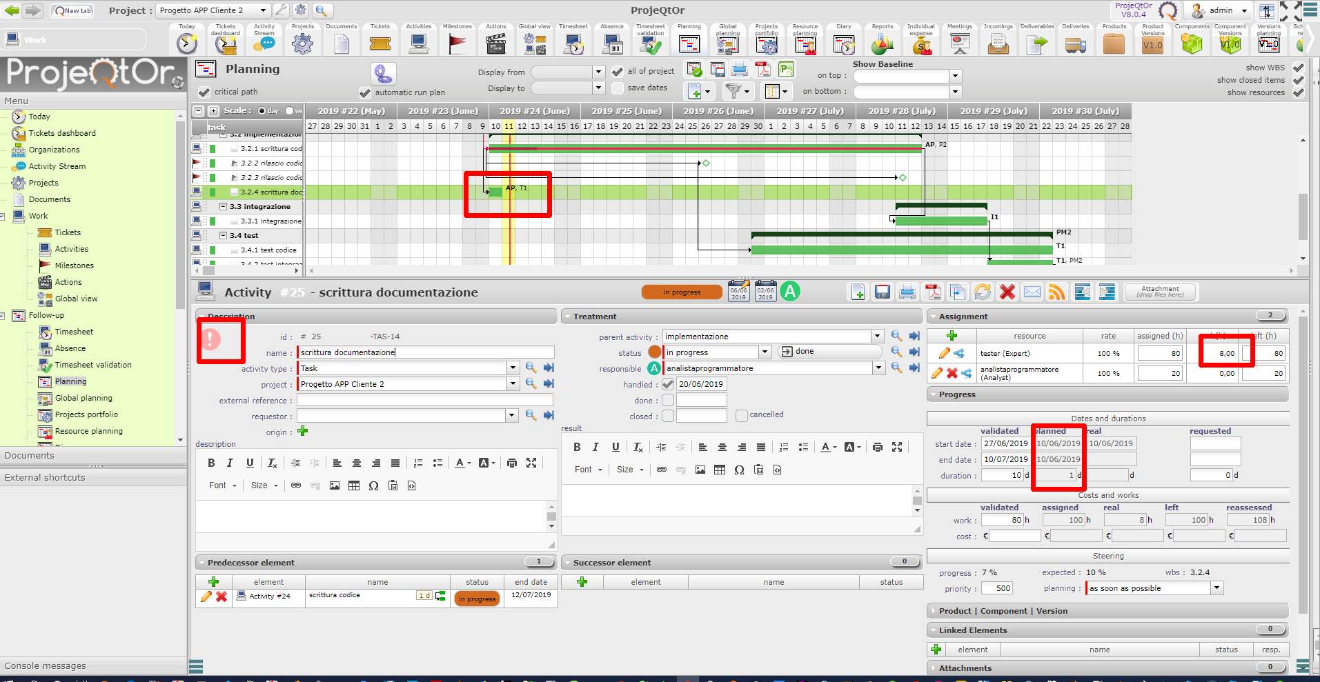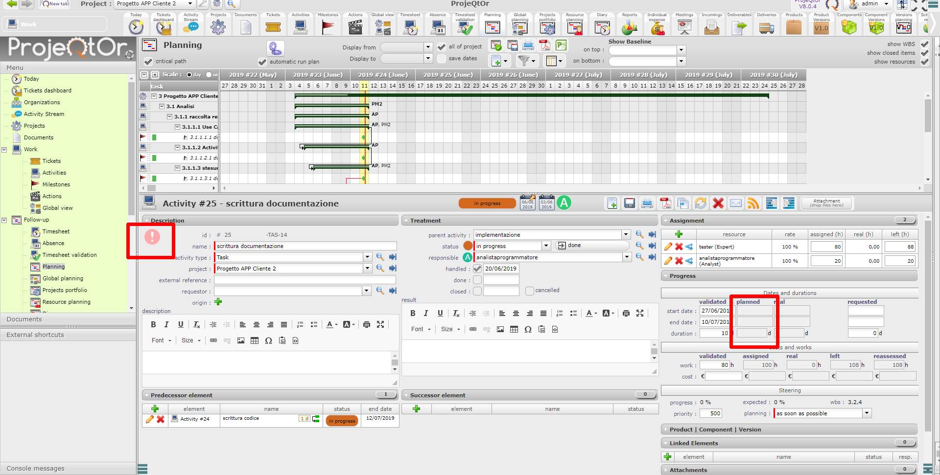 Nevertheless the planning dates are always empty. They start to be filled if I put some real work in the activity, even if it's not yet planned (eg:. like in my case, documentation writing, planned staring fron w26. If I start now this activity and attach some work done, the planning dates are finally visible.