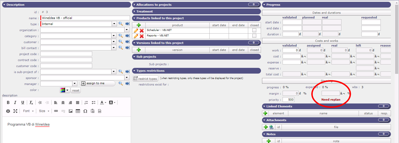 I'm facing an issue while trying to change any project value. I guess the reason is noticed by the message "Need replan" as you can see on the attached picture.